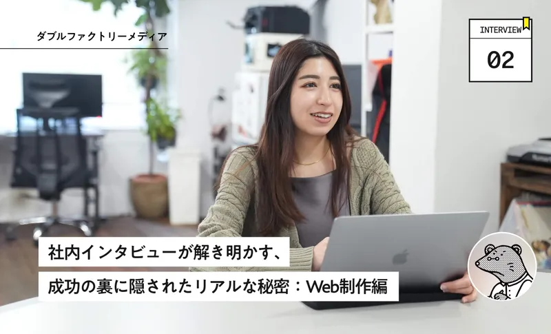 今井:入社当時のダブルファクトリーはスタッフは私と細谷さんの2人、オフィスはワンルームマンションでスッケスケのトイレに小さなベランダがありました笑。これまでは比較的大きい会社に雇用いただいていたので上司からいただく仕事をこなすだけの日々でただの労働者でした。しかし、ダブルファクトリーに入社してからは「自分自身が考え、作り、そしてお客様に提供する」この大切さを学びました。まだまだ改善・挑戦の日々ですが、お客様を成功へ導くためにただの労働者ではなく、スタッフを、そしてダブルファクトリーを導ける存在になりたいとそう感じました。